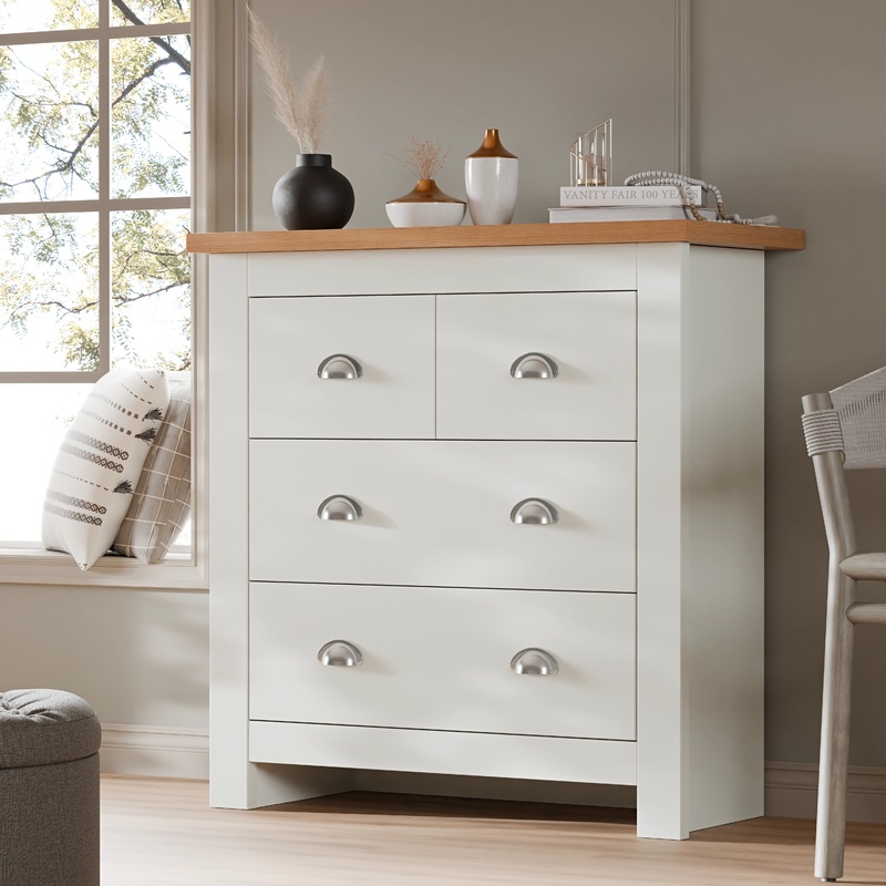 The shaker-inspired 4 drawer chest of drawers lends style and functionality to any room.
