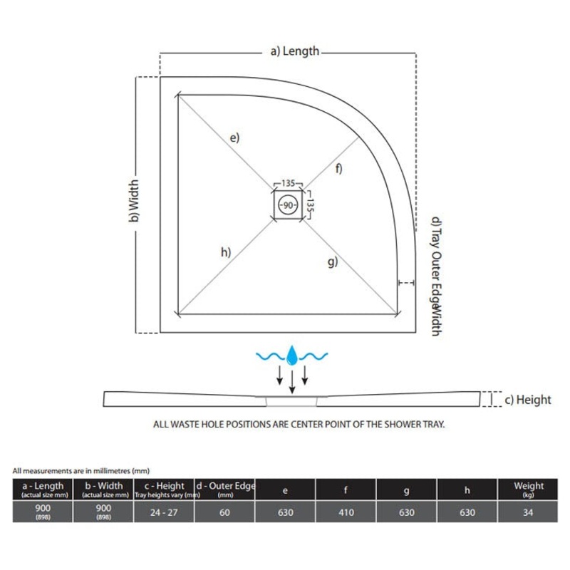 The new ultra low profile 25mm trays from Crosswater are 100% natural stone resin. Available in an array of shapes and sizes with a brilliant white surface thats easy to clean. The minimalist ultra stylish Slab tray is manufactured by hand in the UK from the finest natural materials. The Slab is load bearing and is installed the same way as any standard stone resin shower tray, a bespoke 90mm easy clean waste and stainless steel cover is supplied as standard for the ultimate minimal look, delivering up to 33 litres a minute drainage. Comes with a Lifetime Guarantee.