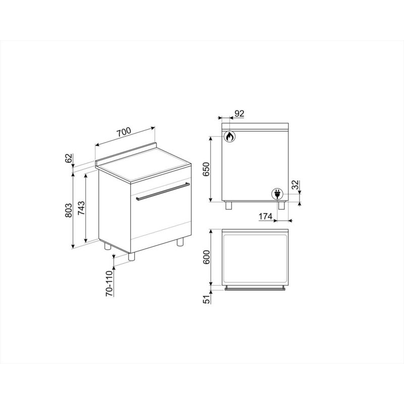 Smeg 70cm Dual Fuel Range Cooker With Pyrolytic Oven